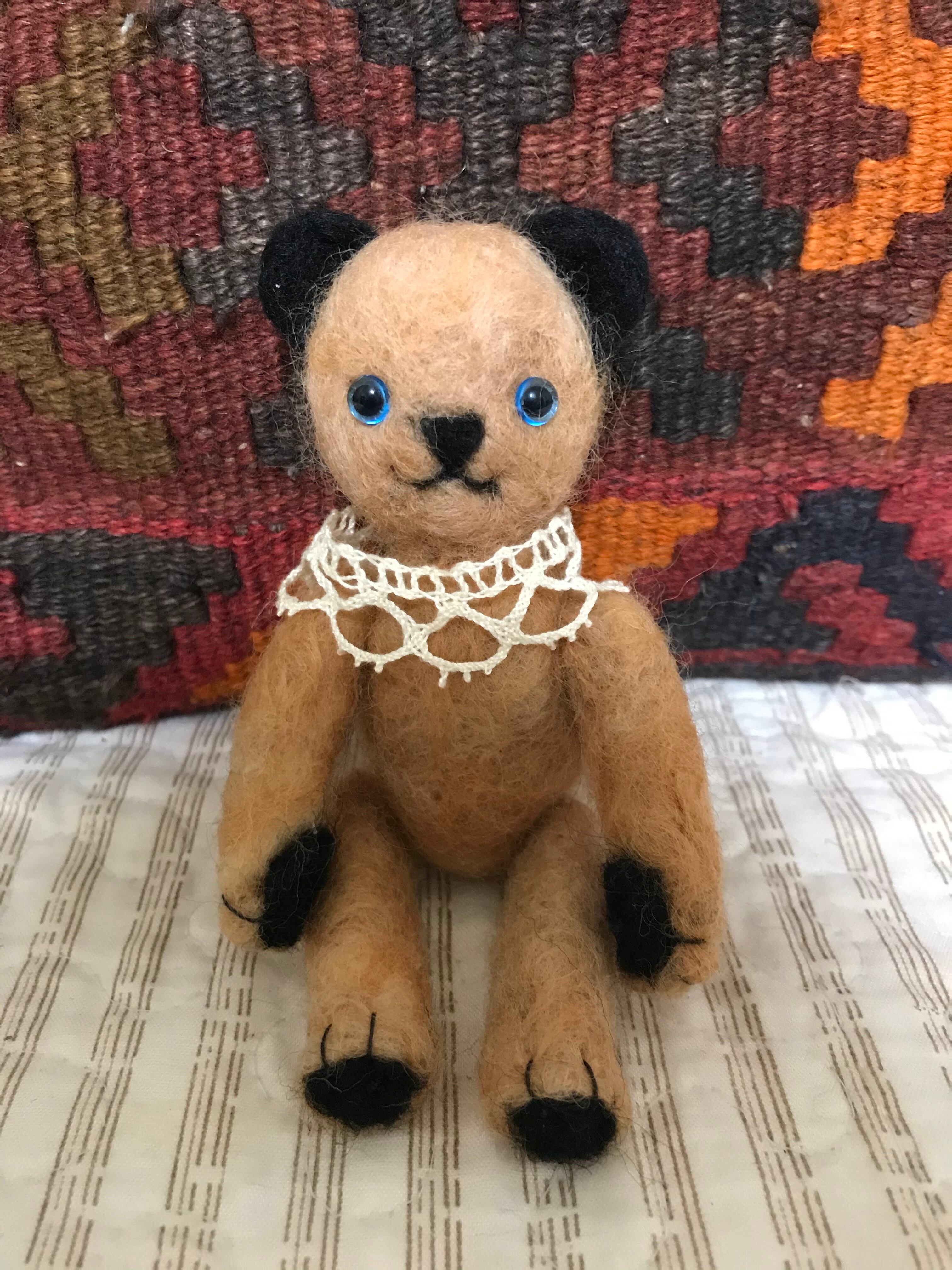 耳や手のパッド、足裏などに黒い羊毛を施したスーティー風のベアちゃん
