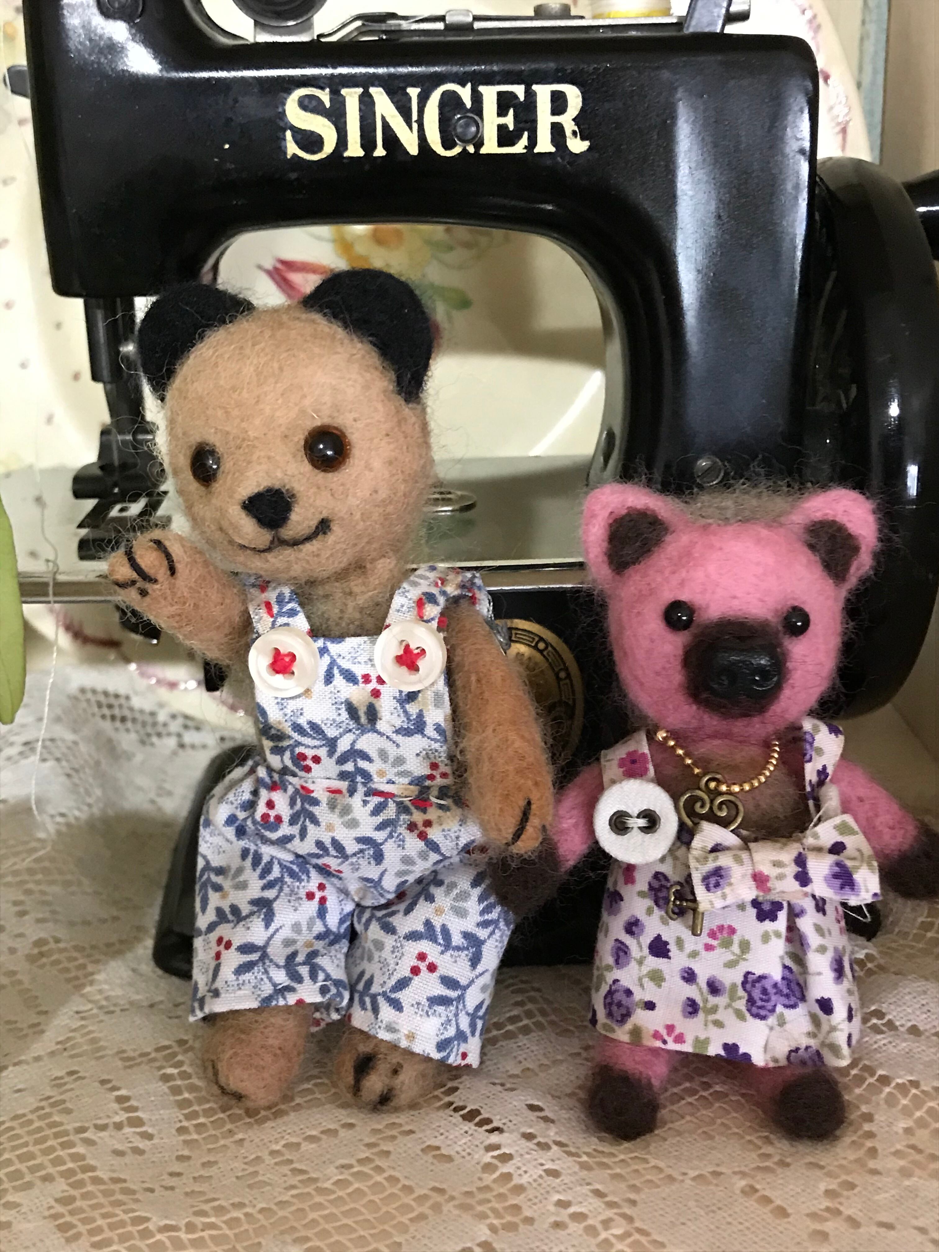 黒耳のベアちゃんとピンクのウサギを造りました。