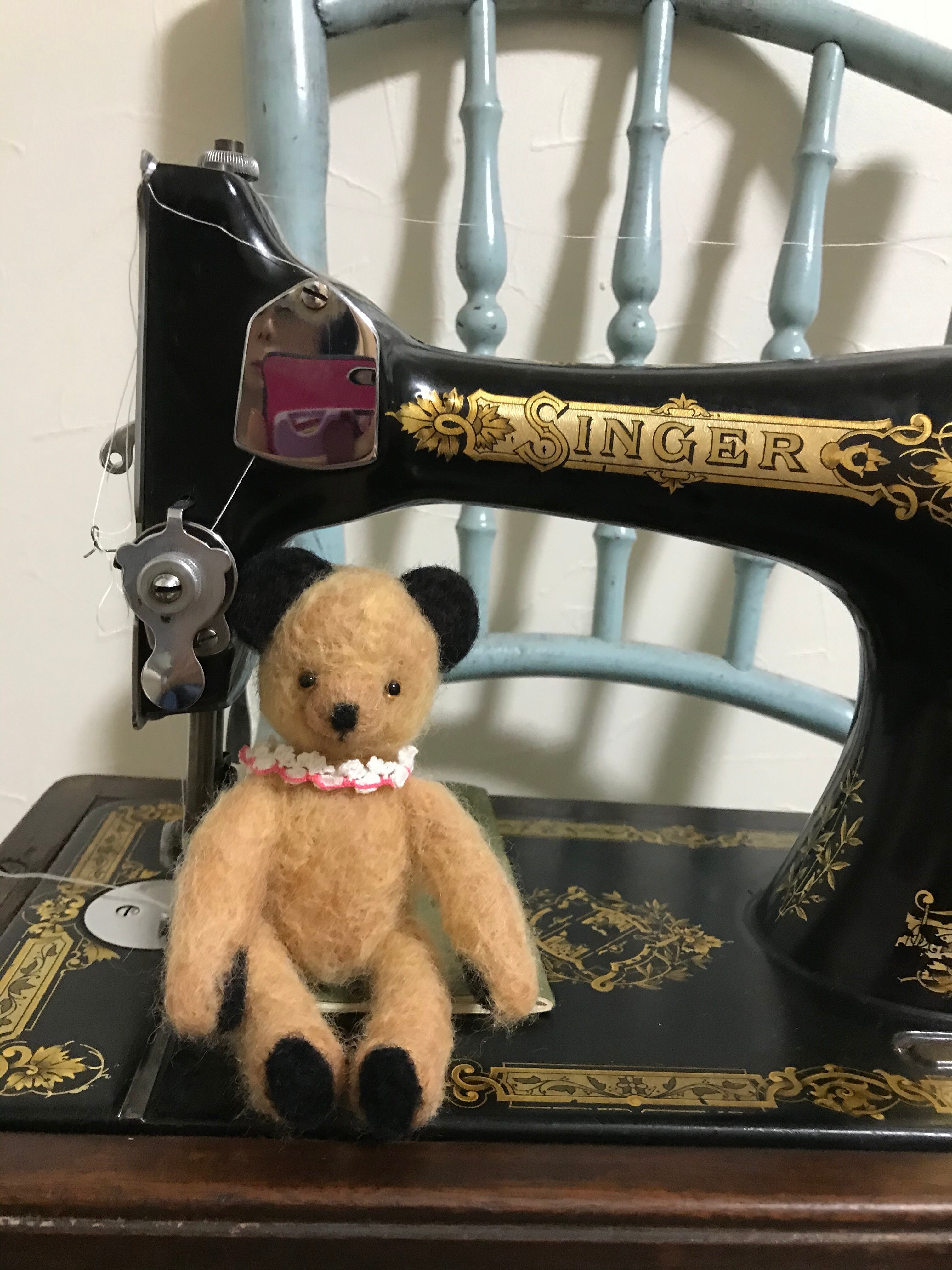 耳や手のパッド、足裏などに黒い羊毛を施したスーティー風のベアちゃん